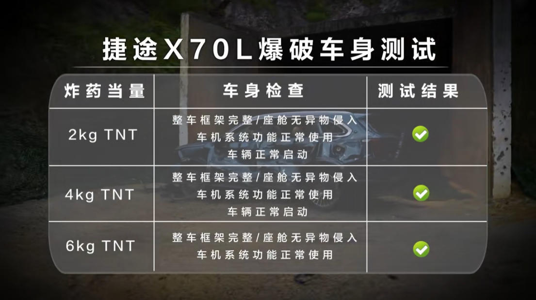 但让它真正脱颖而出的,是随后做的一场安全测试——捷途X70L成功通过了枪击与车身爆破两项严苛测试。
