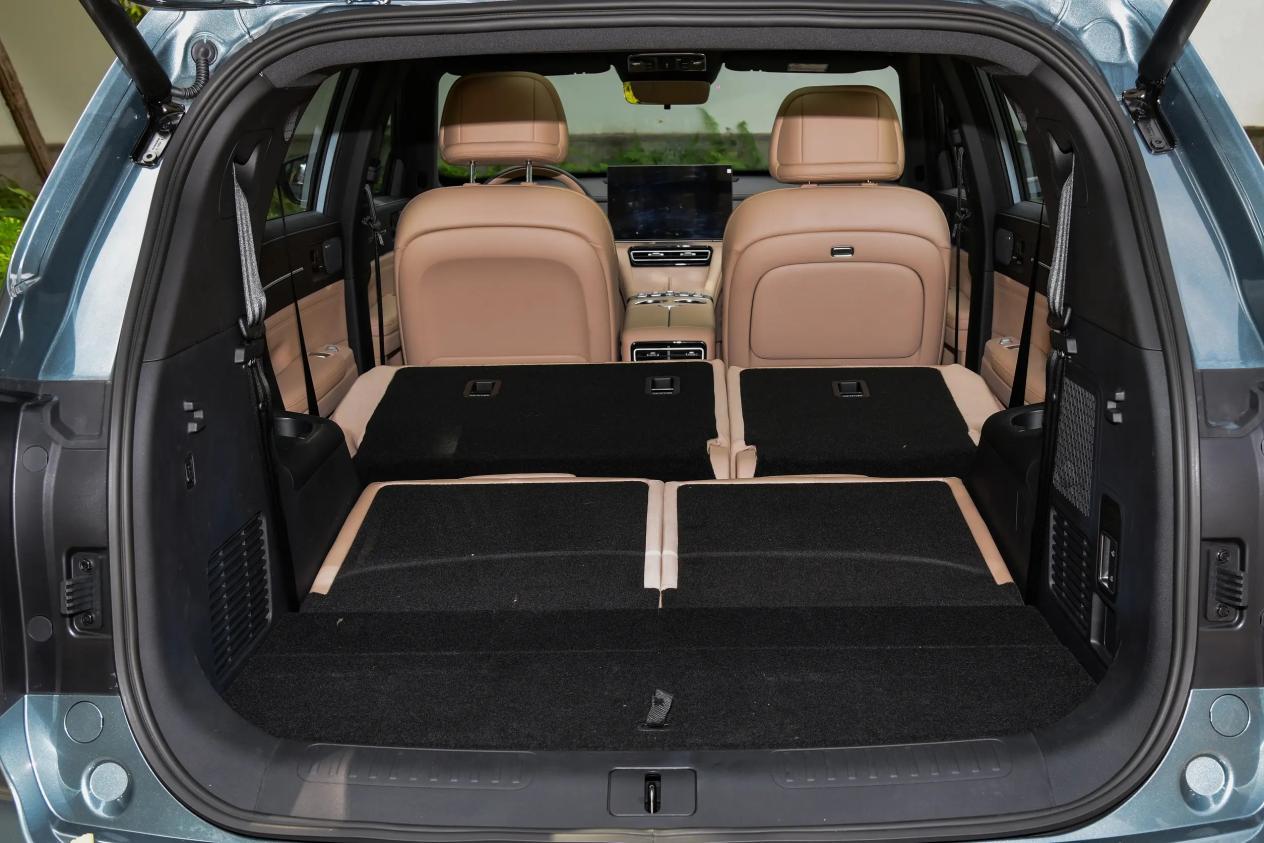 后备箱空间表现亮眼。5座状态下容积达732升(含74升盖板下面的下沉空间),可以分类存放物品。放倒后排座椅后,最大容积可扩展至1708升,装载能力出色,能够轻松容纳露营装备、婴儿车等大件物品,7座版本受尺寸限制,满载时后备厢纵深较小,装载能力稍弱,不过非满载状态下,可以通过放倒第三排的部分或整体来扩展空间,满足日常使用没太大问题。