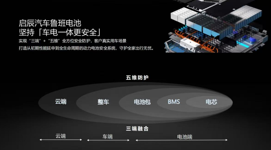 电池安全方面,2026款启辰大V DD-i虎鲸搭载启辰汽车鲁班电池2.0,执行高安全标准和高安全结构,实现车电一体大安全。通过5大高标准安全检验,包括电池整包针刺不起火不爆炸、1.4倍国标耐久振动不散架、1.2倍国标挤压不怕撞、5米高度跌落不爆炸、IPX9K高温高压不惧喷淋,树立了电池安全新标杆;并采用高强度钢蜂窝结构和双独立BLOCK腔体设计,电芯高度集成,提高电池包空间利用率和能量密度,极端情况下,可以延缓及阻隔电芯间的热失控传递,实现整包无热蔓延的超高安全性,确保乘员安全。