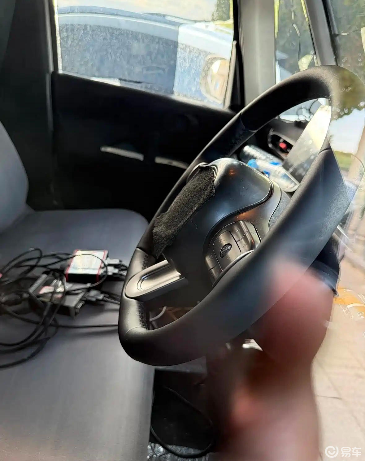 再看车内,该车为右舵设计,采用三幅式方向盘,并配有方向盘加热功能,中控台设计有仪表屏+悬浮式大屏,A柱上也设计有三角窗,增加了驾驶员视野宽度,前排座椅为贯穿式布局。