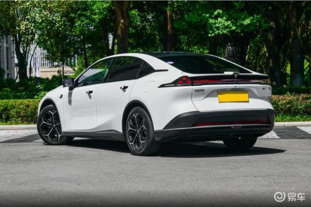 车身侧面的线条修长流畅,略带俯冲式的造型十分动感,配备了19英寸银黑双色的花瓣形轮圈,造型前卫时尚以及245/45 R19的前后轮胎规格,无边框式的车门同样带有前卫帅气的风格,也更能吸引年轻消费者的目光。除此之外,尾部的造型运动激进,并带有溜背式的设计,还搭配扰流板也能够进行电动升降开启,贯穿式的尾灯颇具辨识度,下方大面积的黑色包围处还带有扩散器的设计风格,将运动氛围进一步的烘托。