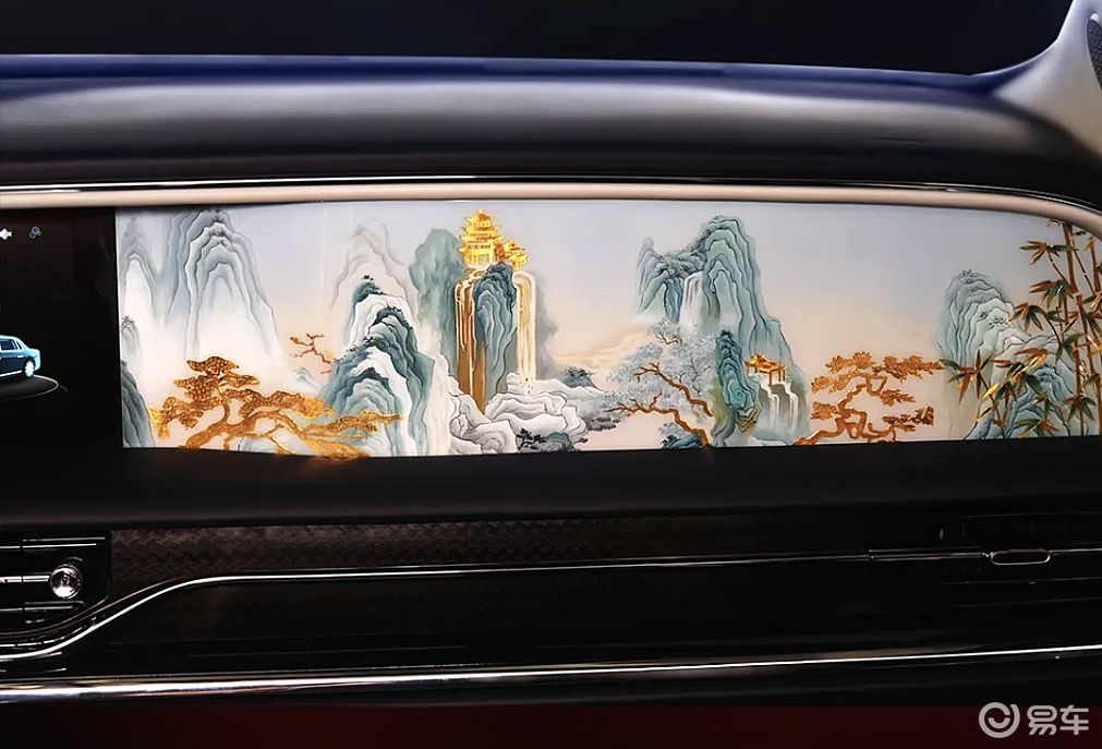 标志性的"星空顶"由1340根光导纤维手工编织而成,可模拟璀璨星空效果,甚至能根据客户要求还原特定星座图案。12.3英寸显示屏采用隐藏式设计,不使用时可与木饰面板融为一体,保持内饰的整体美感。